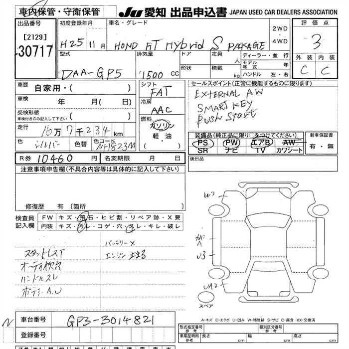 HONDA FIT HYBRID S PACKAGE - лот 30717