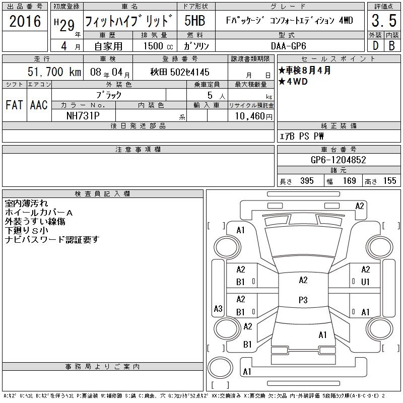 HONDA FIT HYBRID F PACKAGE COMFORT E4WD - лот 2016