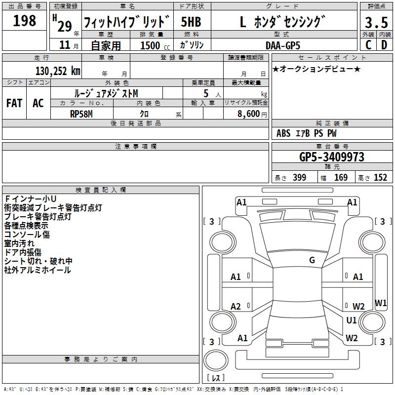 HONDA FIT HYBRID L HONDA SENSING - лот 198
