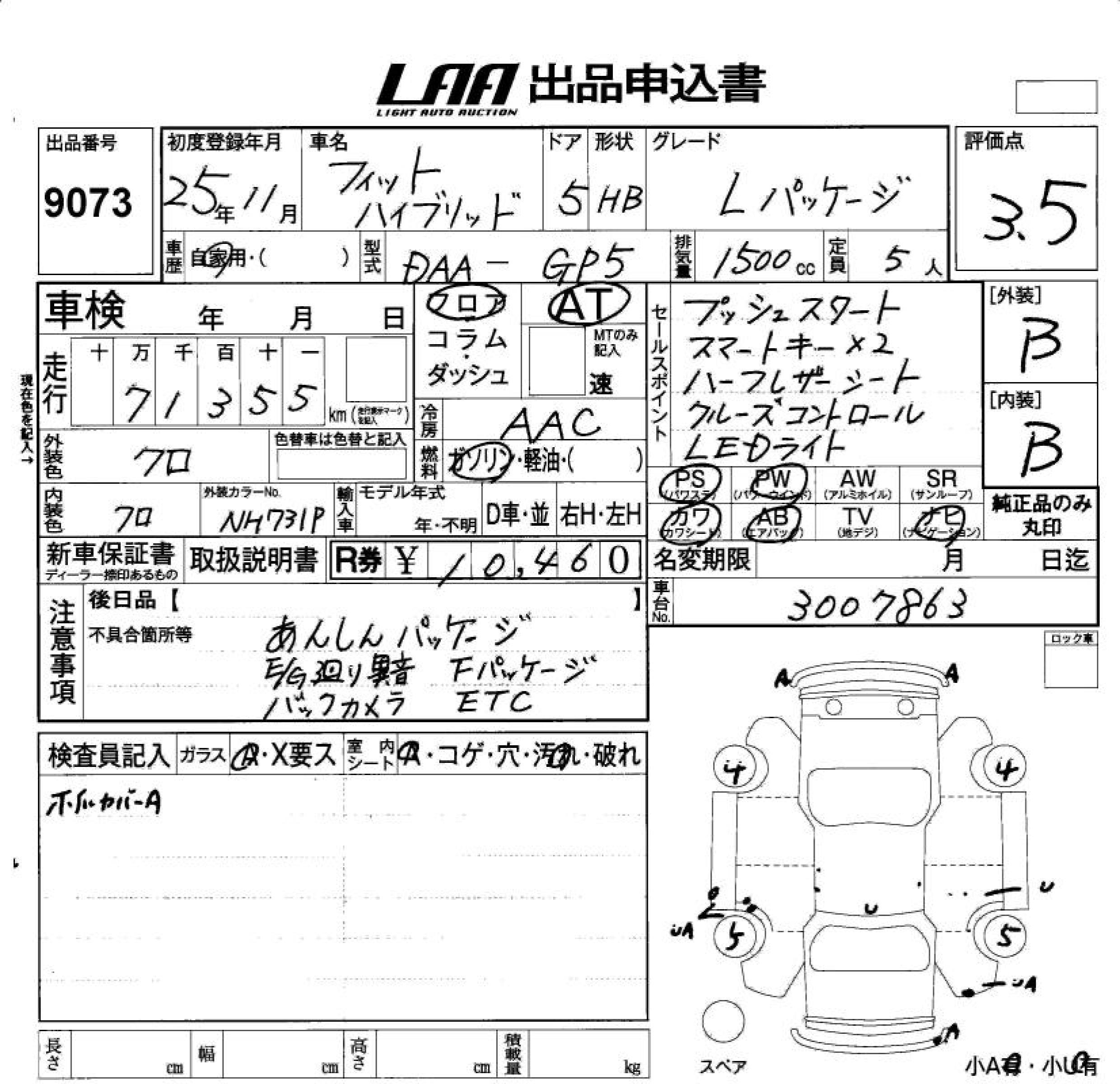 HONDA FIT HYBRID HYBRID *L PACKAGE - лот 9073