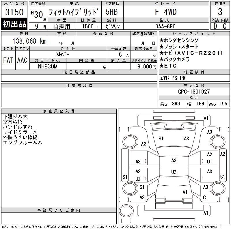 HONDA FIT HYBRID F 4WD - лот 3150