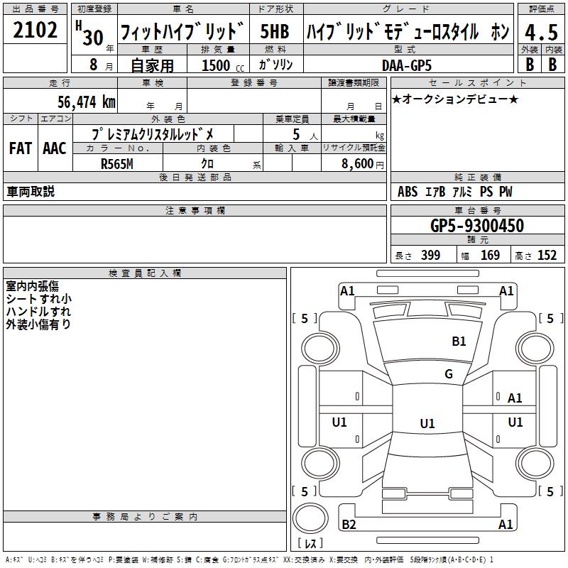 HONDA FIT HYBRID HYBRID MODULO STYLE HO N - лот 2102