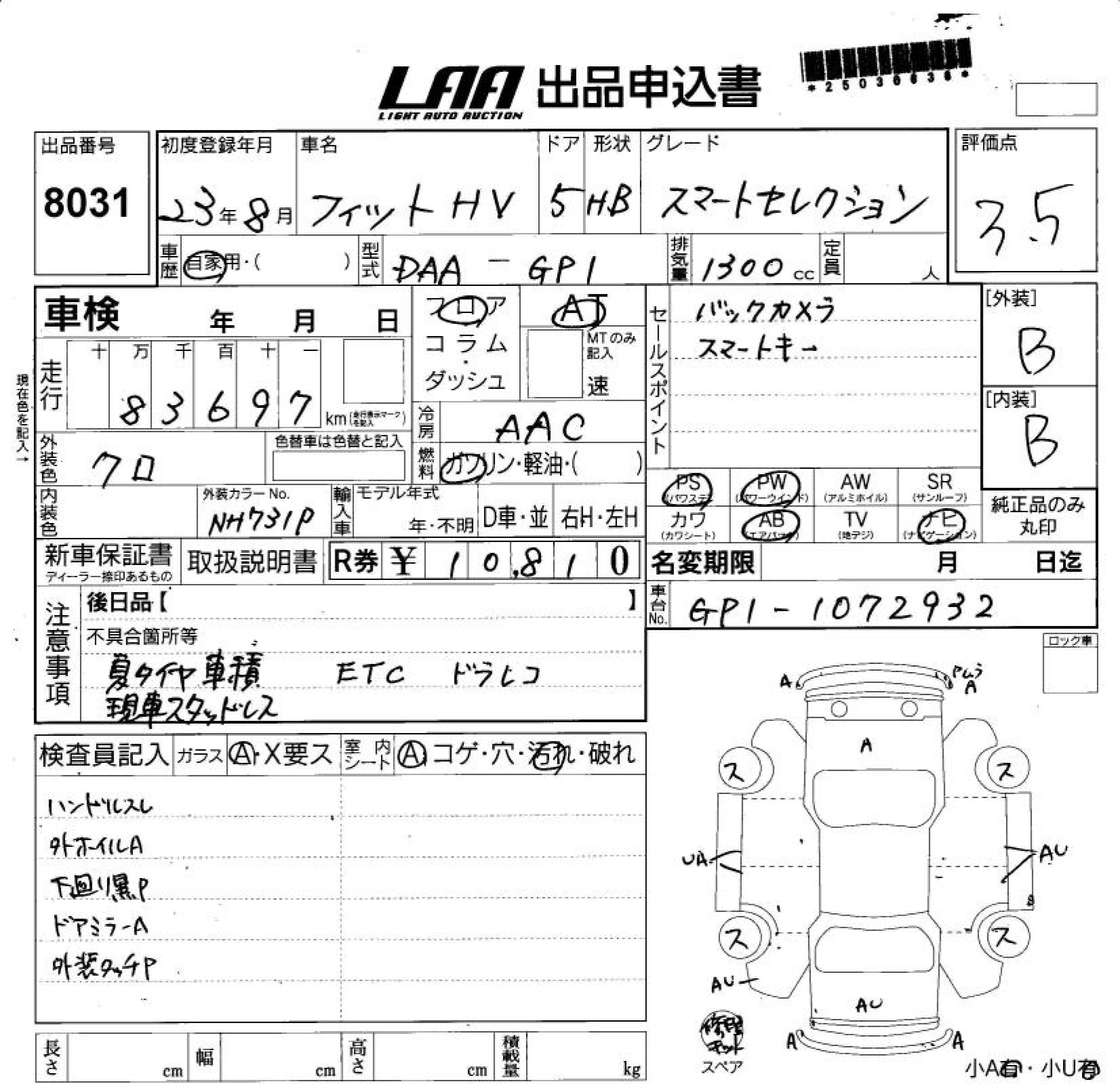HONDA FIT HYBRID SMART SELECTION - лот 8031