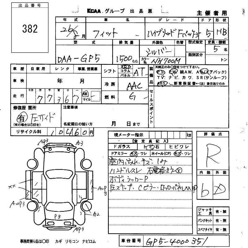 HONDA FIT HYBRID F PACKAGE - лот 382
