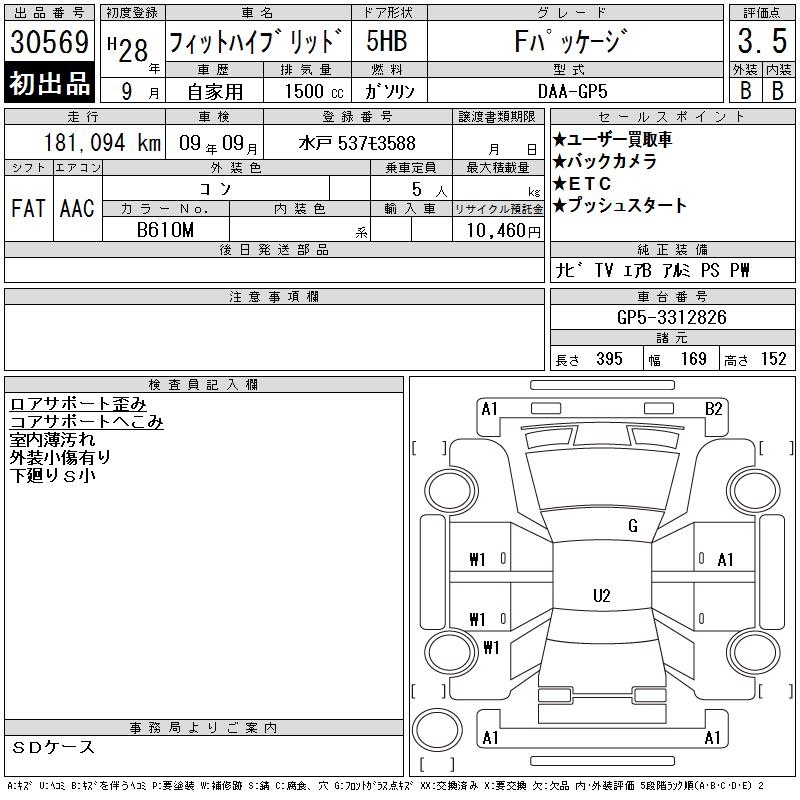 HONDA FIT HYBRID F PACKAGE - лот 30569