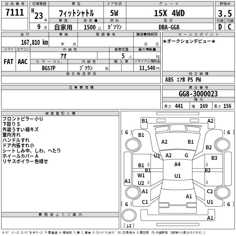 HONDA FIT SHUTTLE 15X 4WD - лот 7111