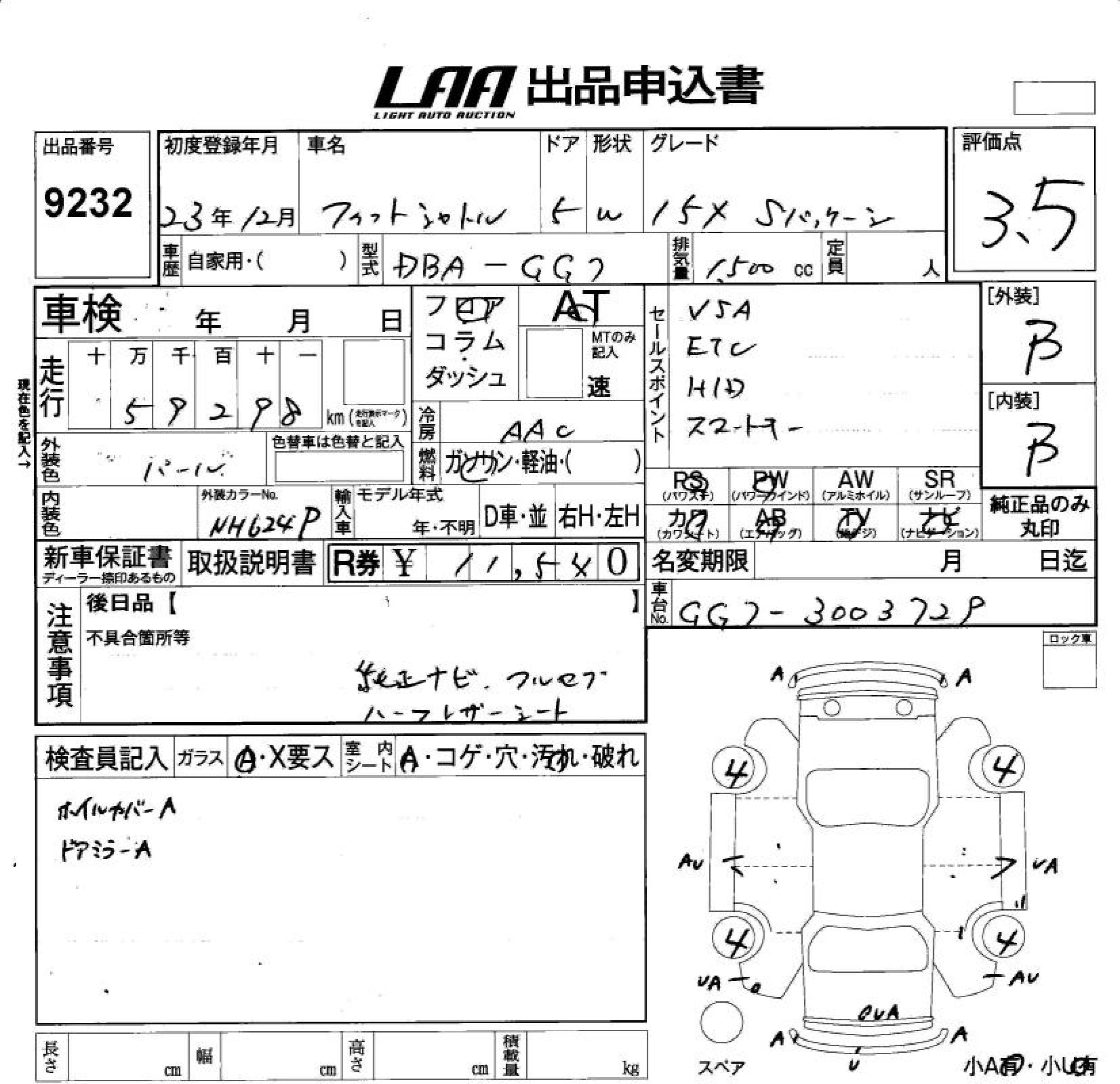 HONDA FIT SHUTTLE 15X S PACKAGE - лот 9232