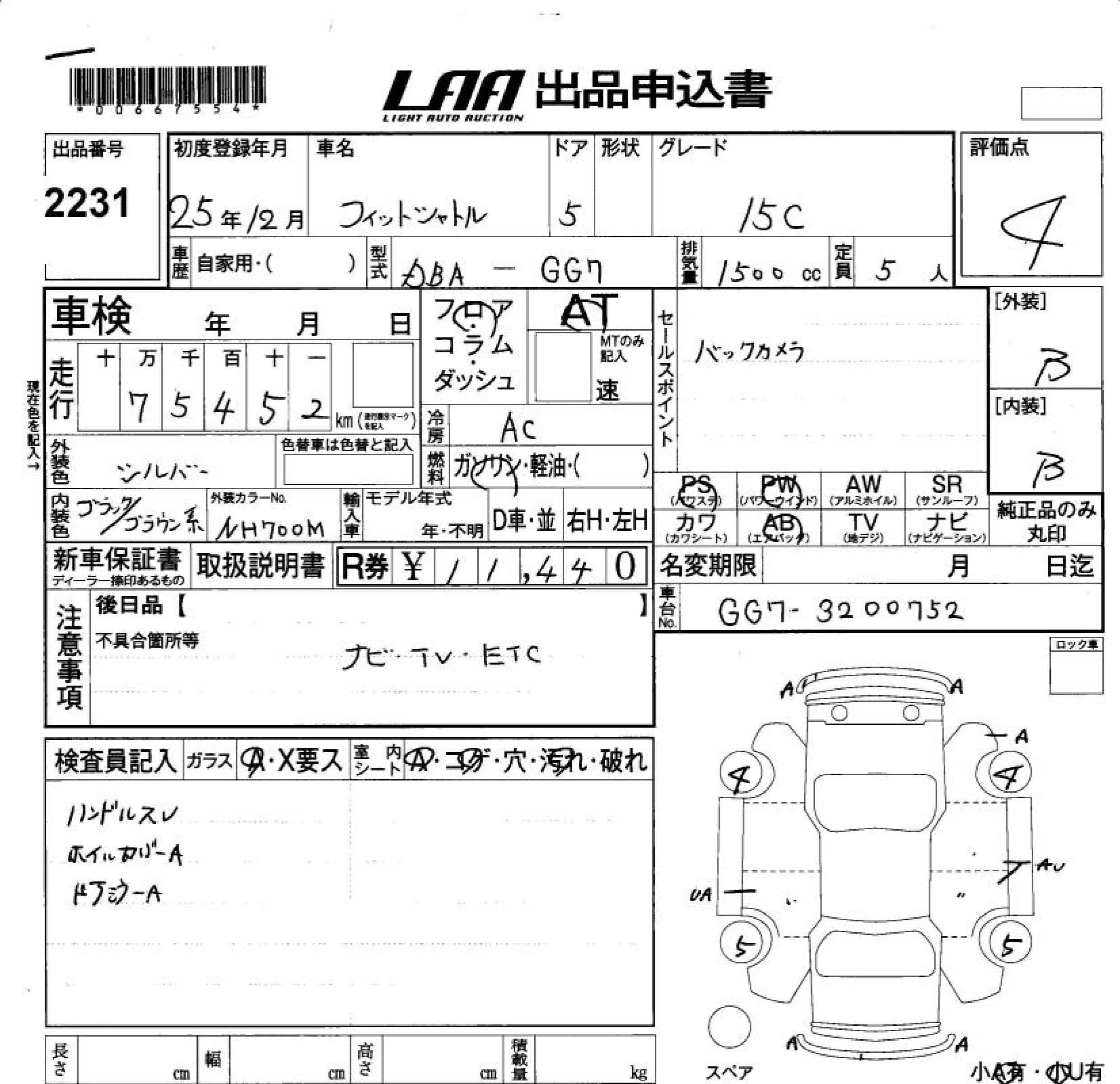 HONDA FIT SHUTTLE 15C - лот 2231