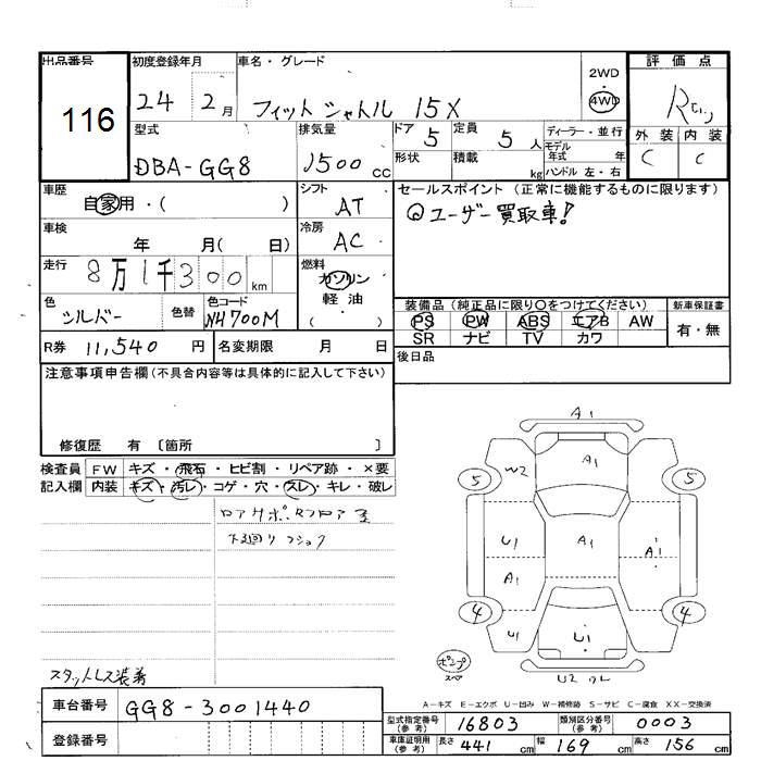 HONDA FIT SHUTTLE 4WD 15X - лот 116