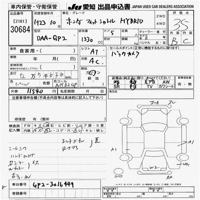 HONDA FIT SHUTTLE HYBRID - лот 30684