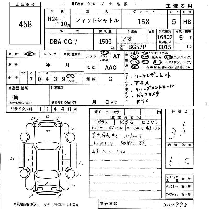 HONDA FIT SHUTTLE 15X - лот 458