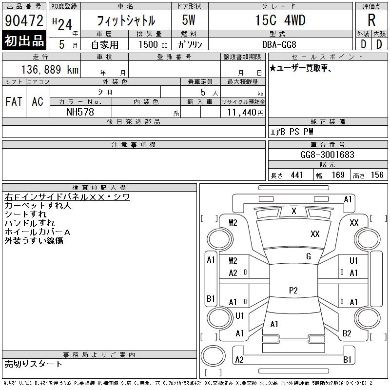 HONDA FIT SHUTTLE 15C 4WD - лот 90472