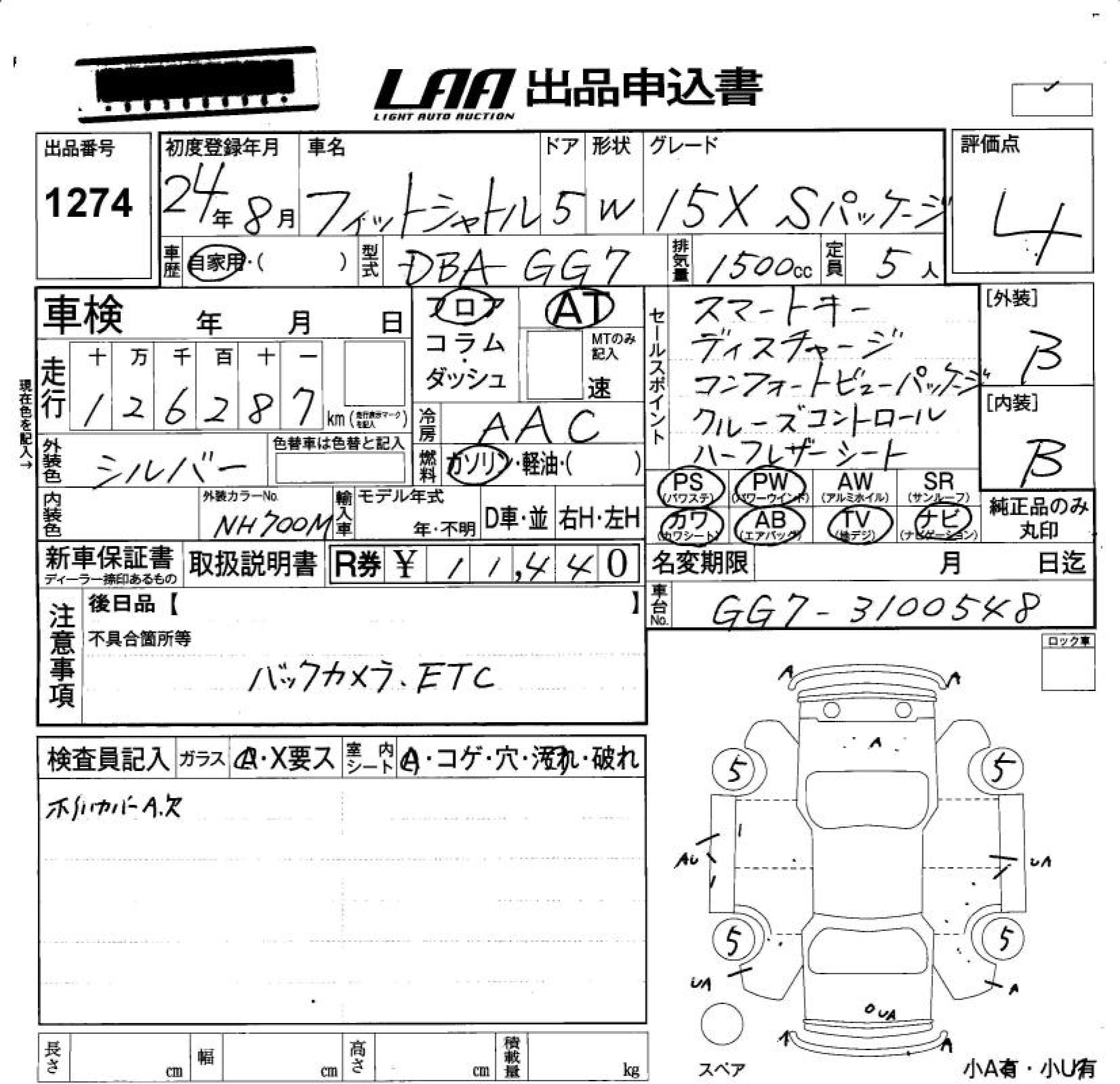 HONDA FIT SHUTTLE 15X S PACKAGE - лот 1274