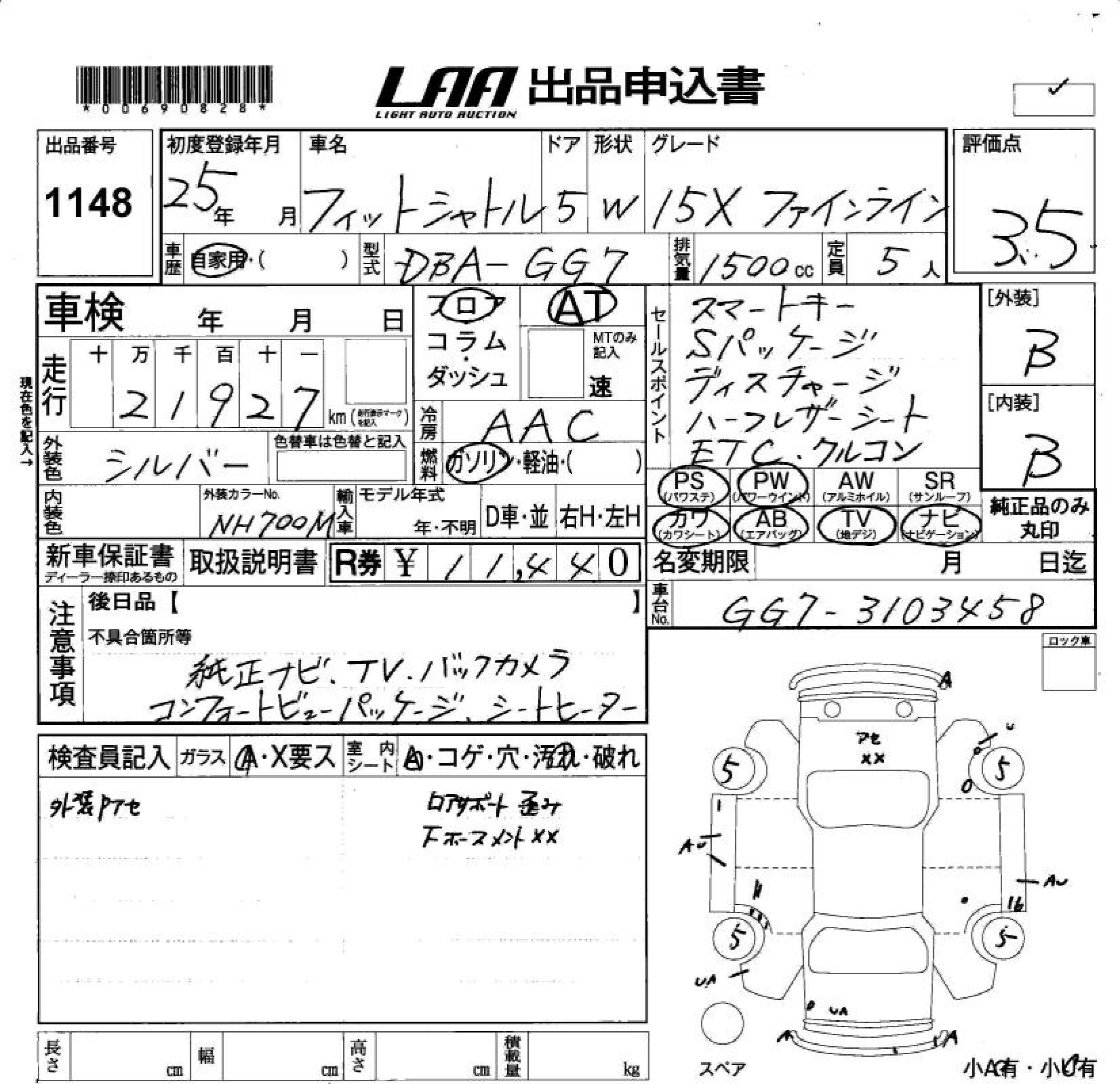 HONDA FIT SHUTTLE 15XFA IN LINE - лот 1148