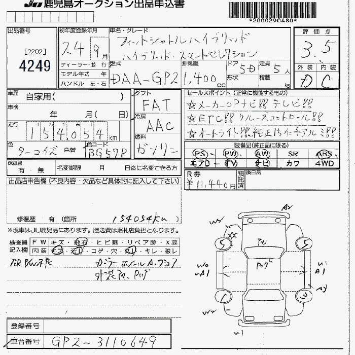 HONDA FIT SHUTTLE HYBRID SMART SELECTION - лот 4249