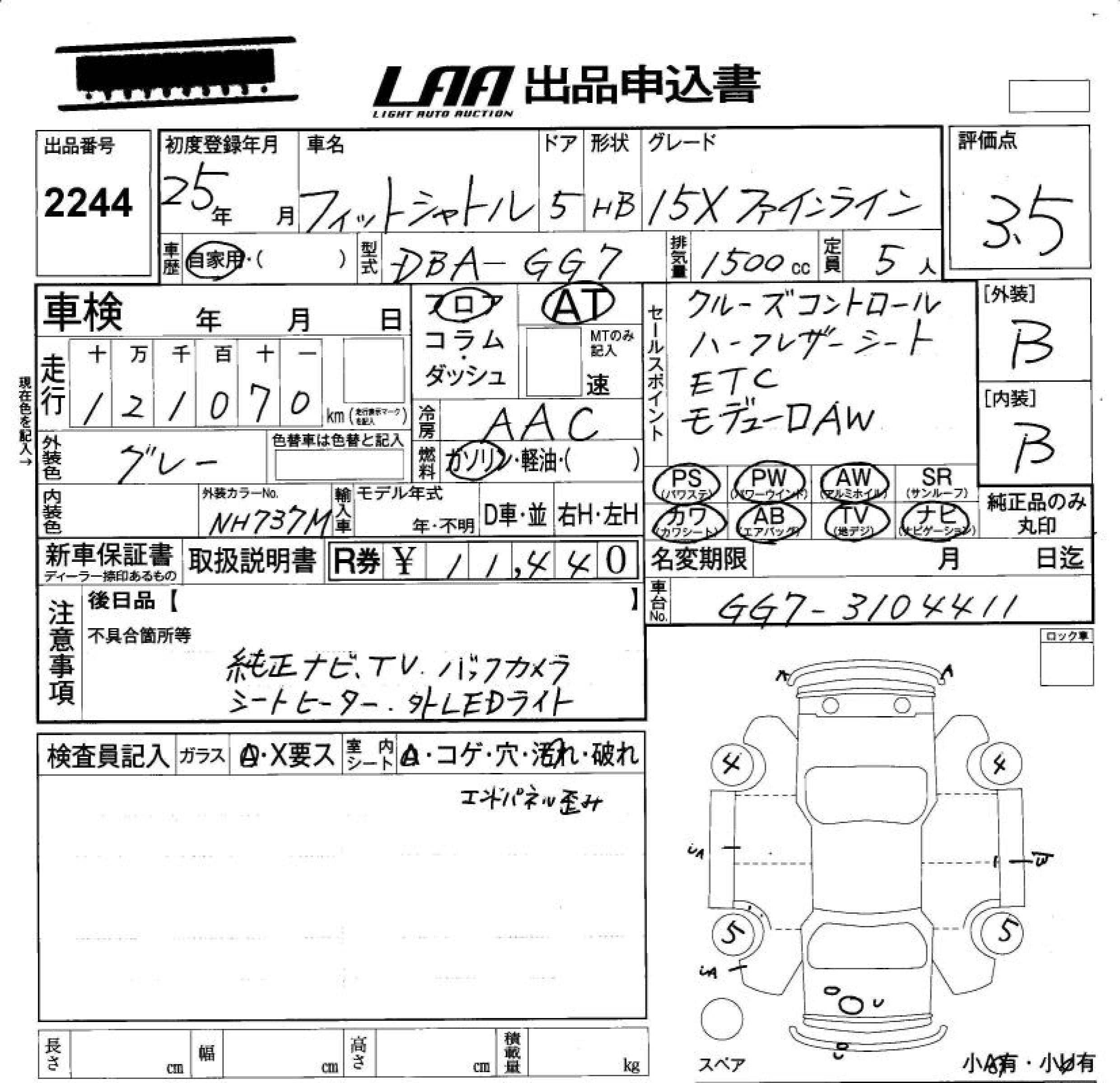 HONDA FIT SHUTTLE 15XFA IN LINE - лот 2244