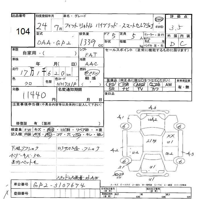 HONDA FIT SHUTTLE HYBRID SMART SELECTION - лот 104