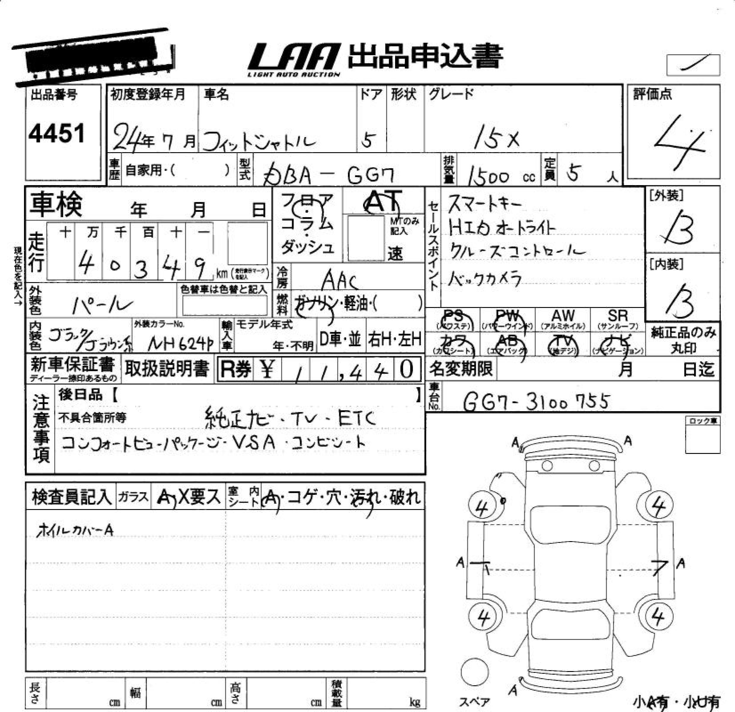HONDA FIT SHUTTLE 15X - лот 4451