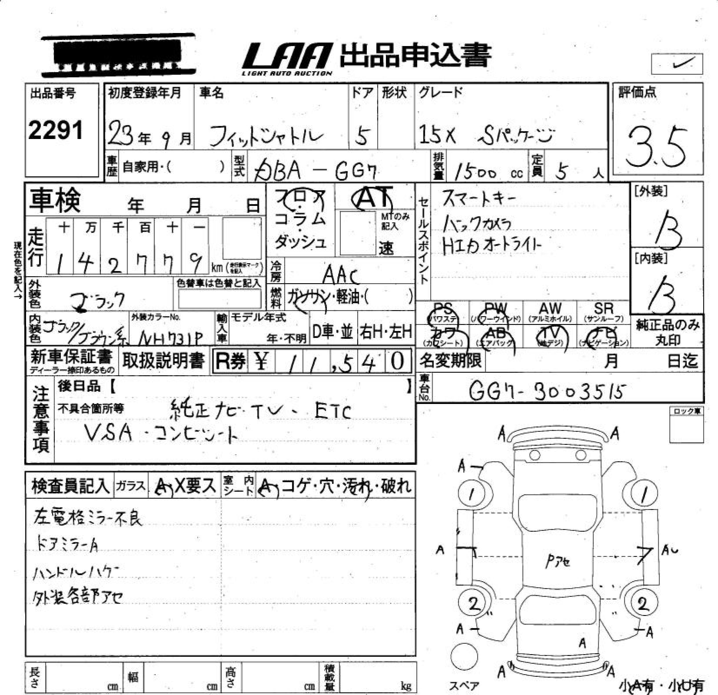 HONDA FIT SHUTTLE 15X S PACKAGE - лот 2291
