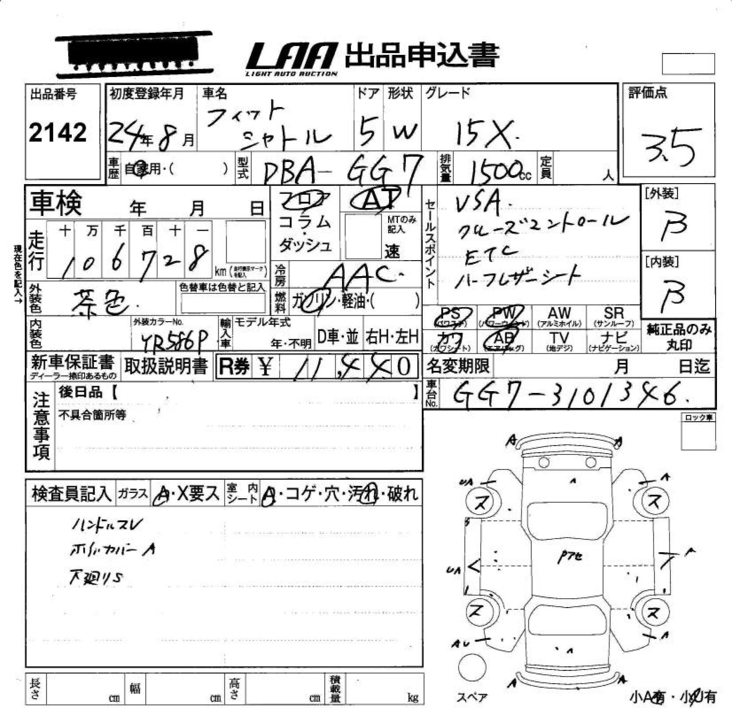 HONDA FIT SHUTTLE 15X - лот 2142