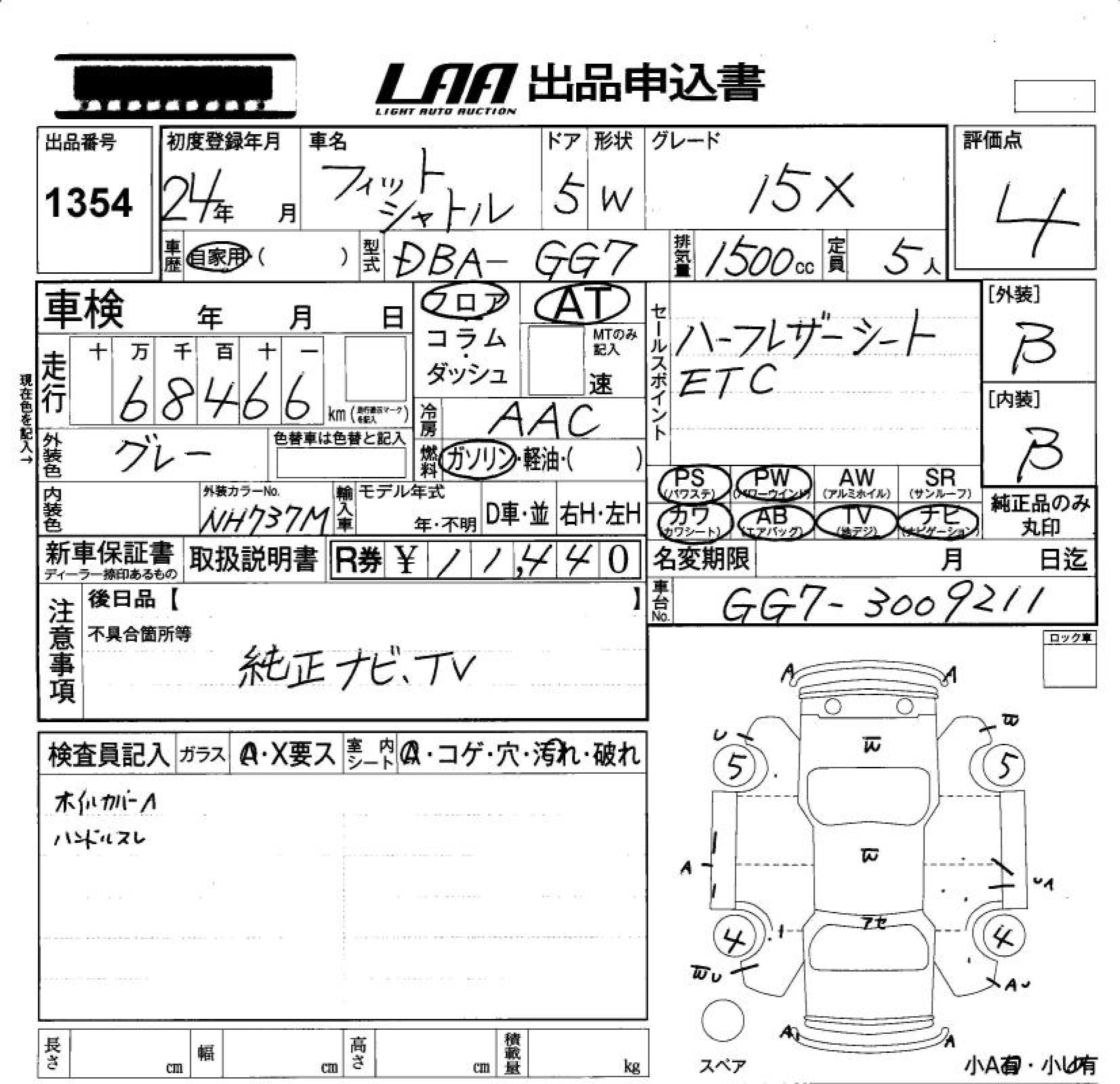 HONDA FIT SHUTTLE 15X - лот 1354