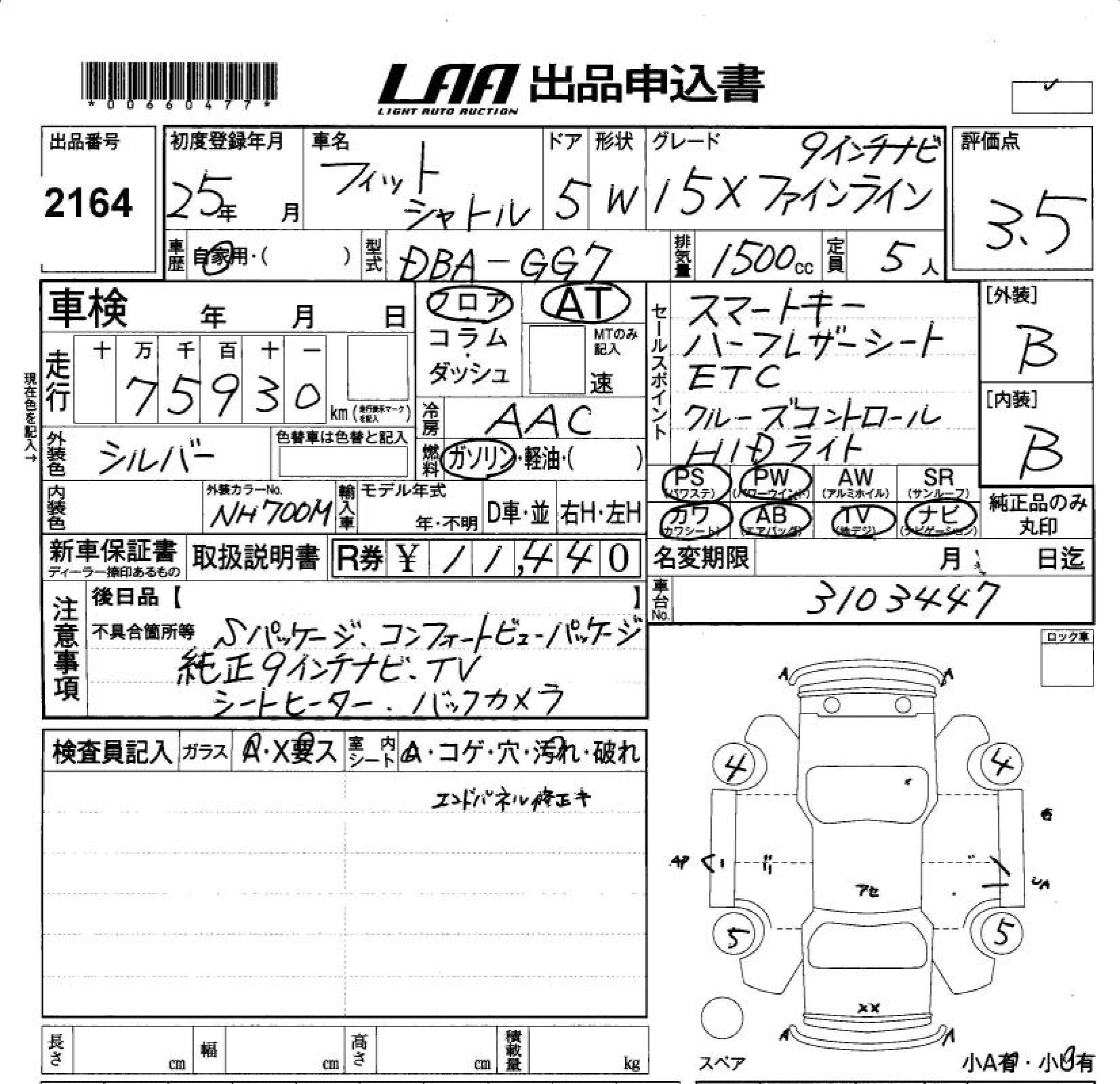 HONDA FIT SHUTTLE 15XFA IN LINE 9 IN - лот 2164