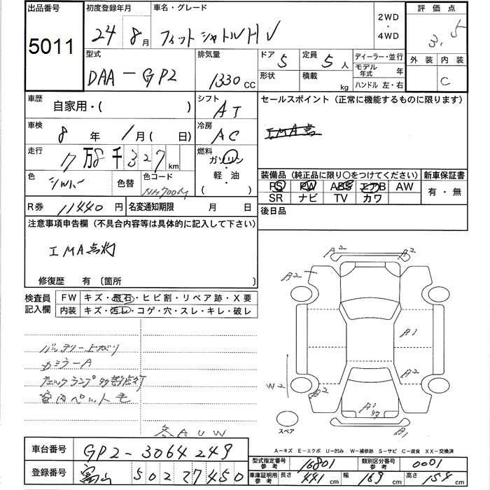 HONDA FIT SHUTTLE HYBRID - лот 5011