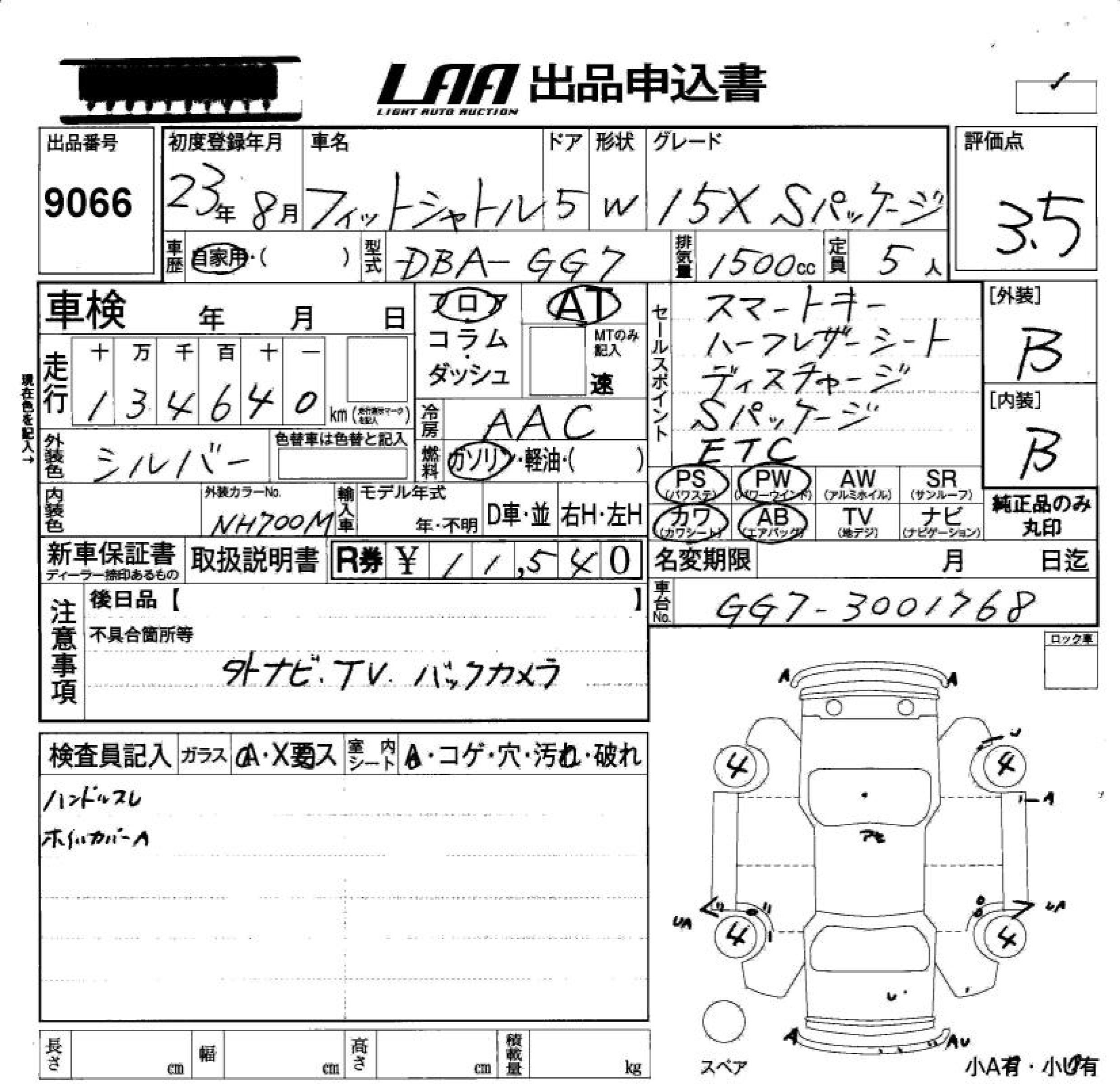 HONDA FIT SHUTTLE 15X S PACKAGE - лот 9066