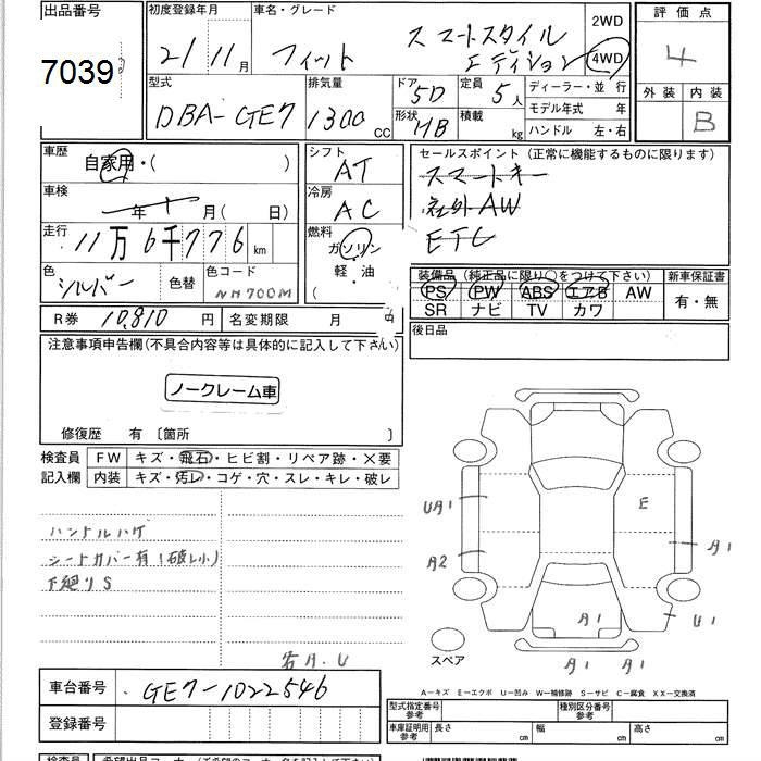 HONDA FIT - лот 7039