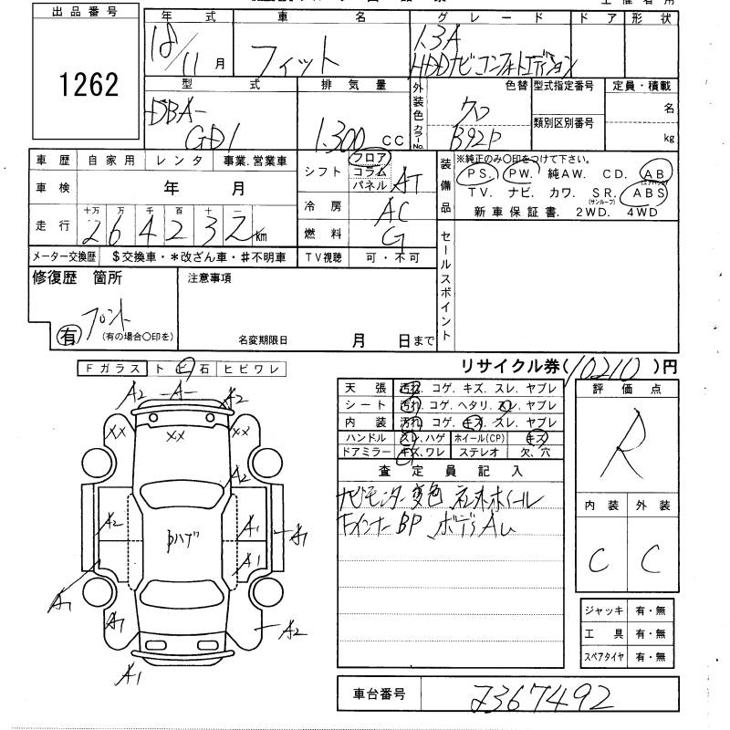 HONDA FIT - лот 1262