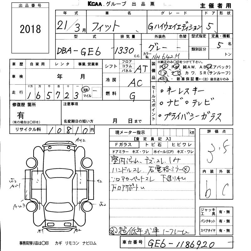HONDA FIT - лот 2018