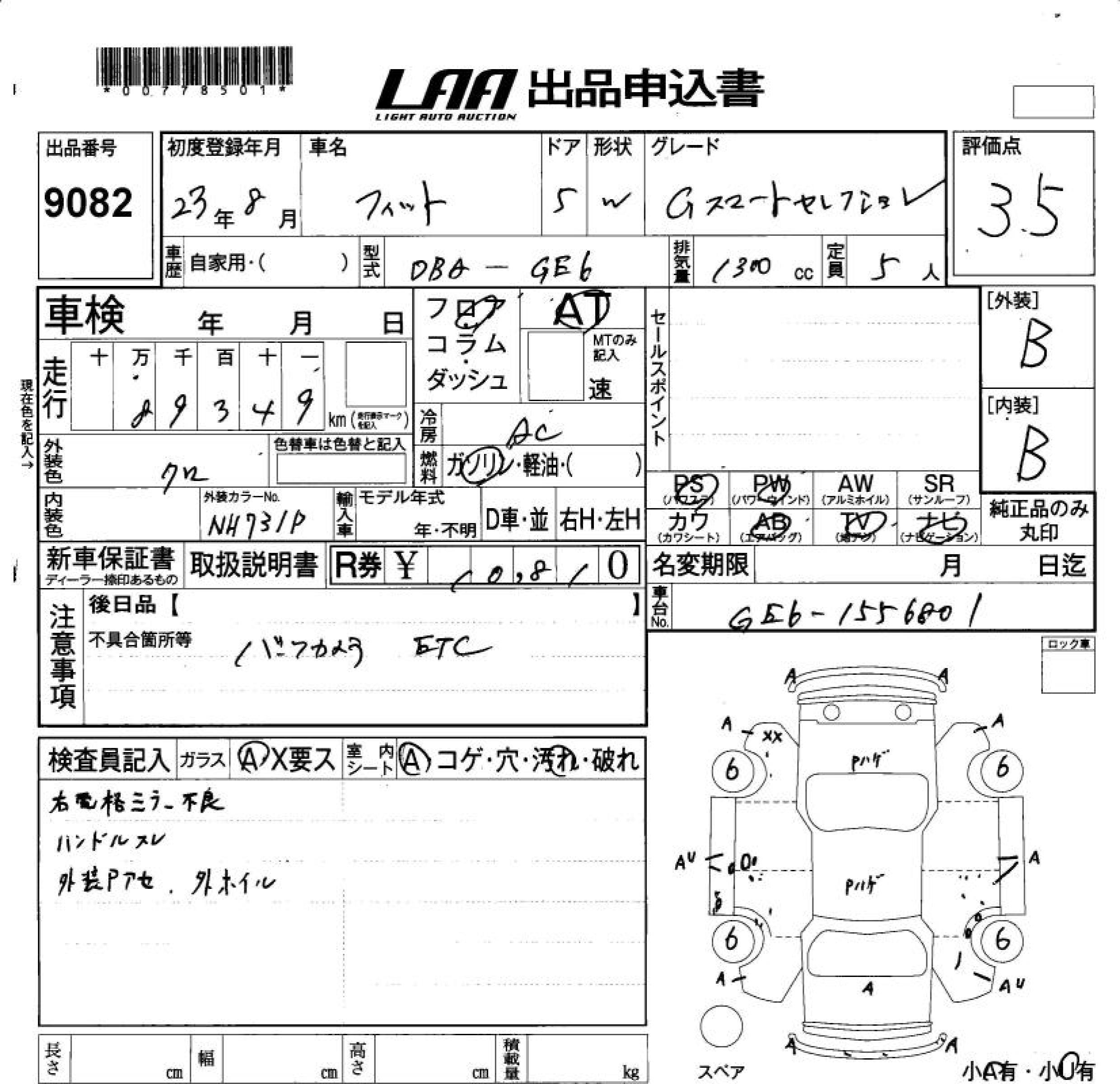HONDA FIT - лот 9082