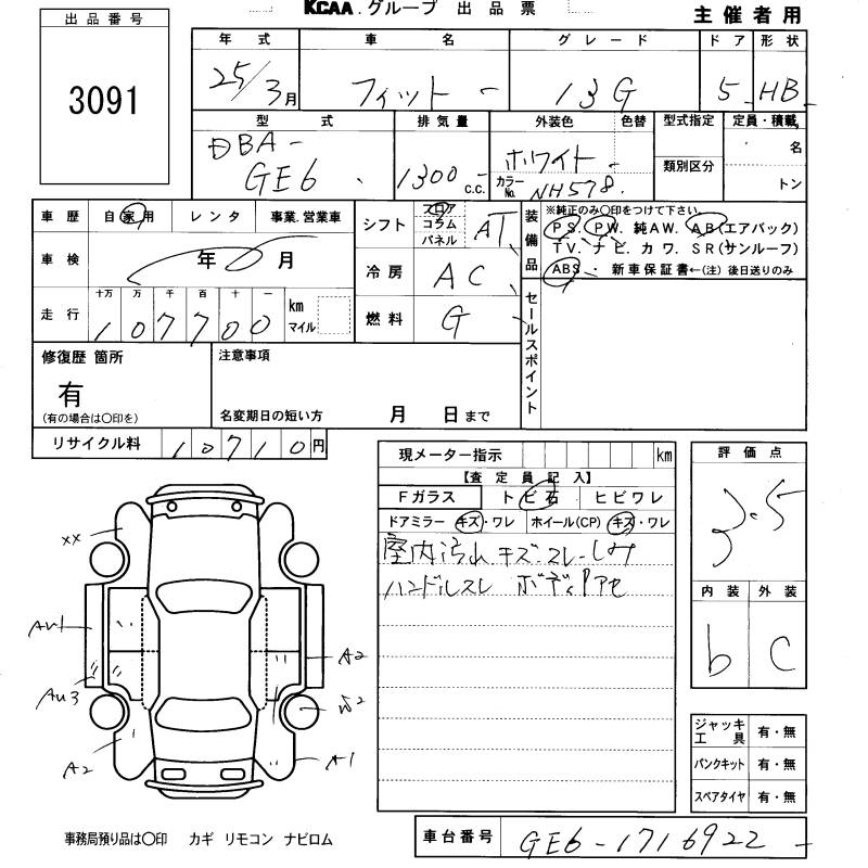 HONDA FIT - лот 3091