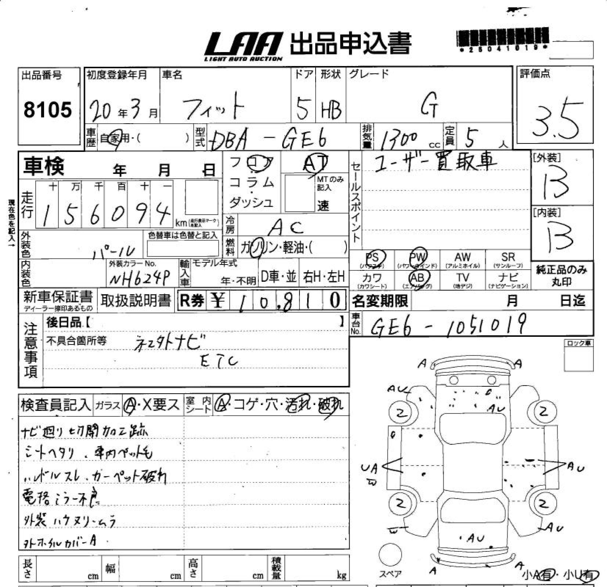 HONDA FIT - лот 8105