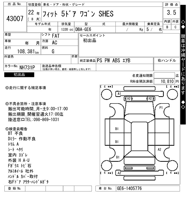 HONDA FIT - лот 43007