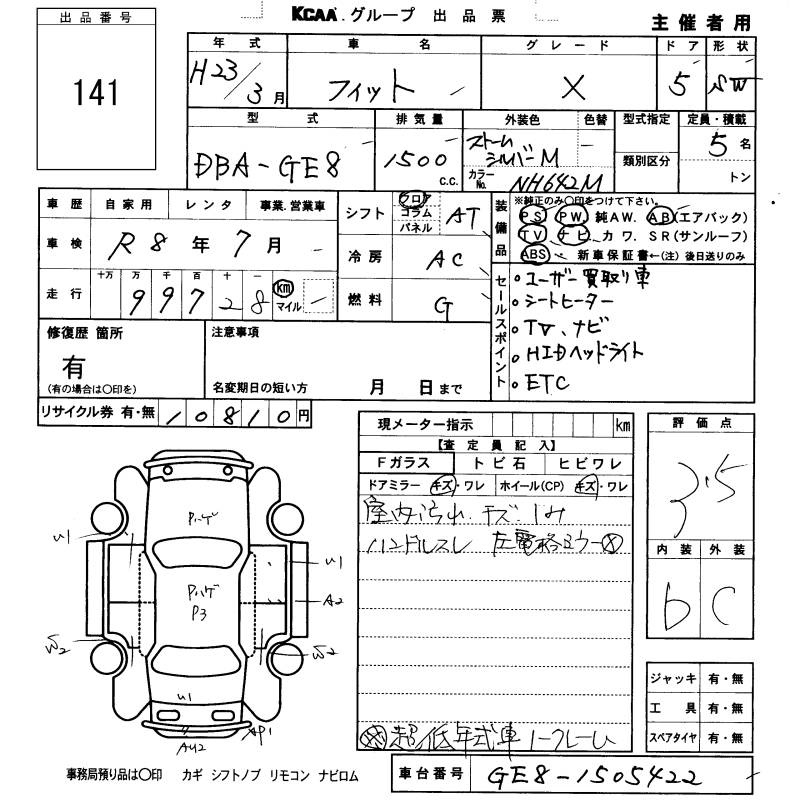 HONDA FIT - лот 141