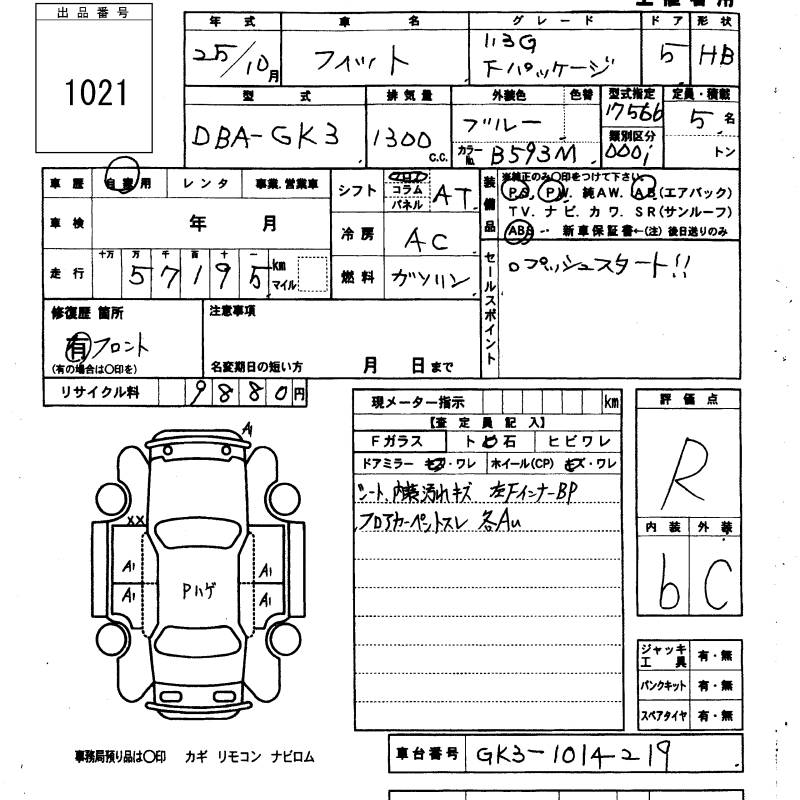 HONDA FIT - лот 1021