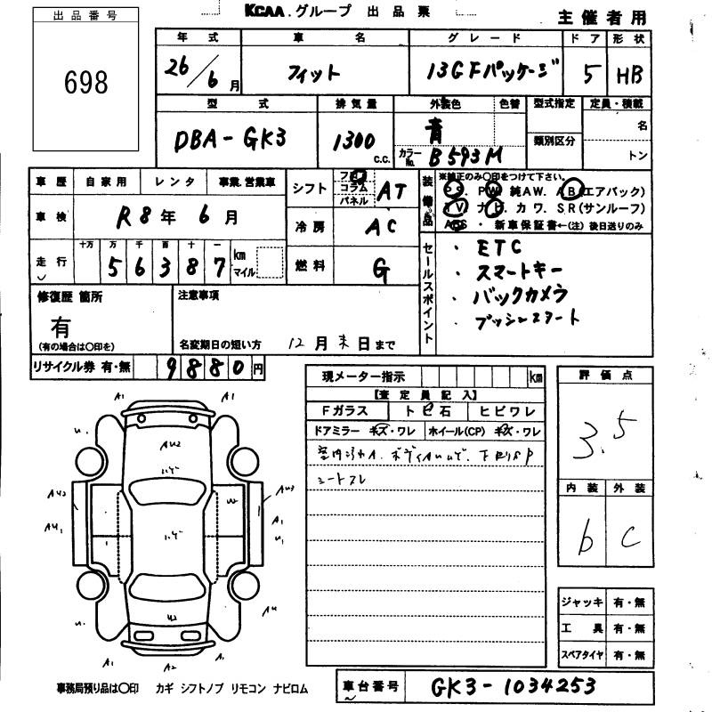 HONDA FIT - лот 698