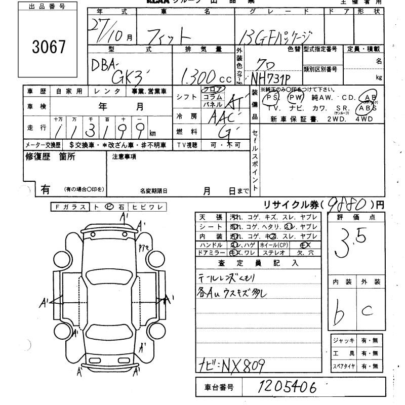 HONDA FIT - лот 3067