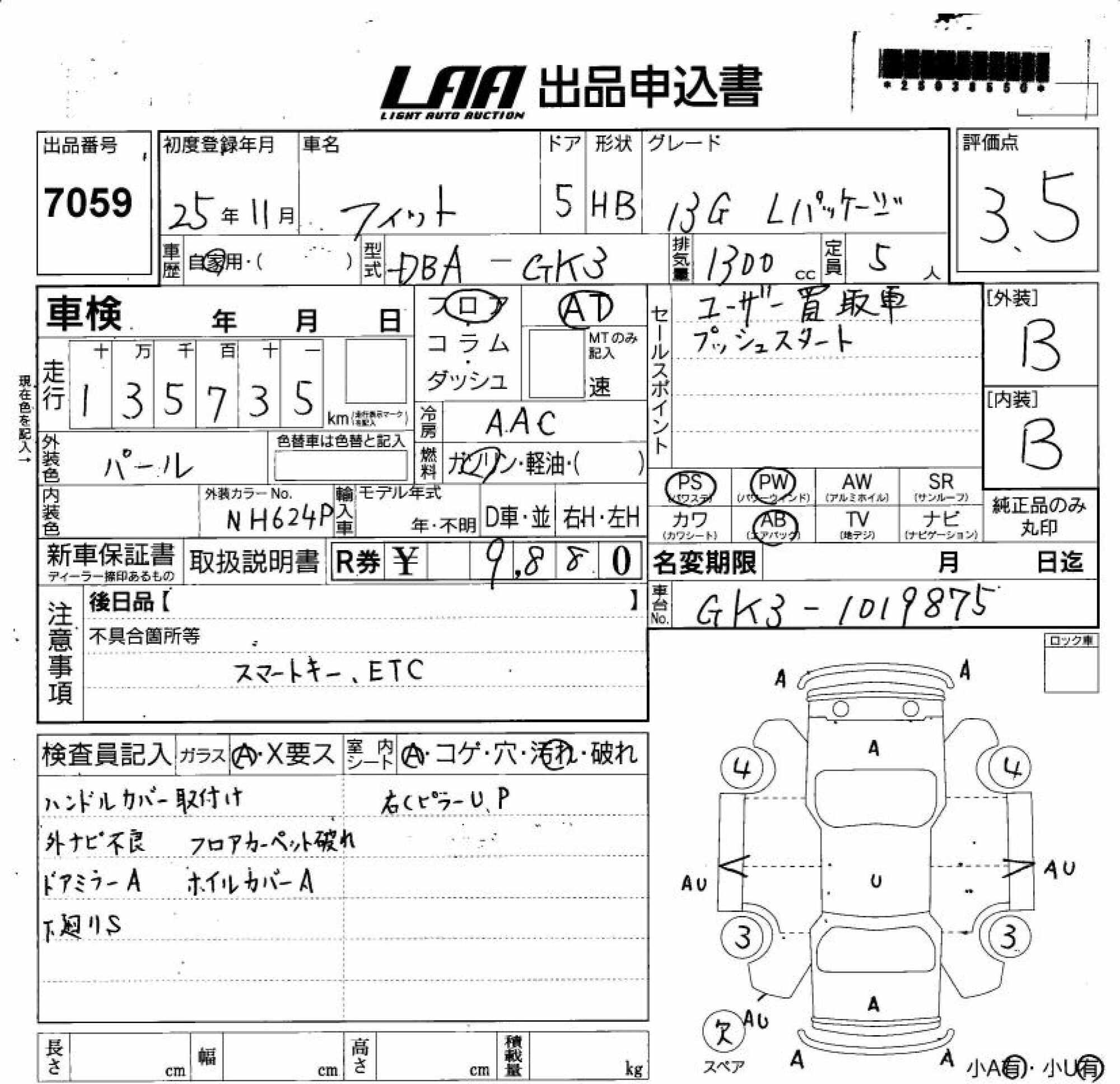 HONDA FIT - лот 7059