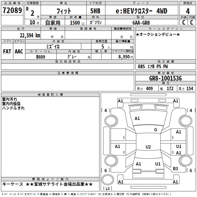 HONDA FIT E:HEV CROSS MANY -4WD - лот 72089