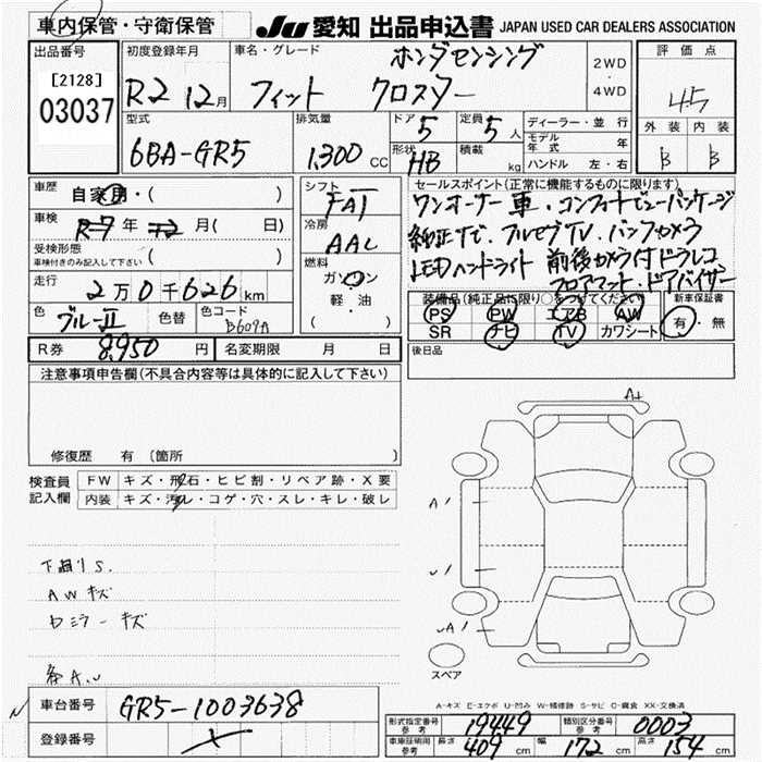 HONDA FIT CROSS MANY - - лот 3037