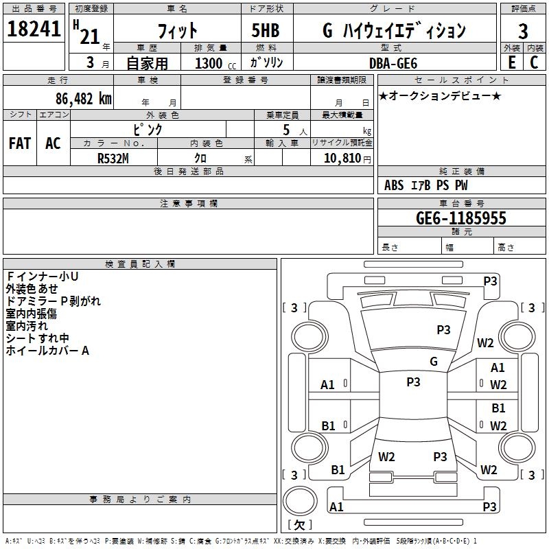 HONDA FIT G HIGHWAY EDITION - лот 18241
