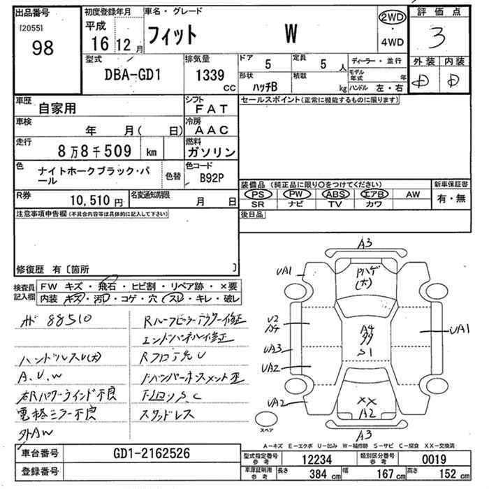 HONDA FIT W - лот 98