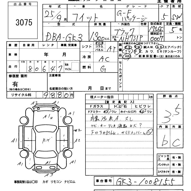 Статистика продаж HONDA FIT с аукционов Японии