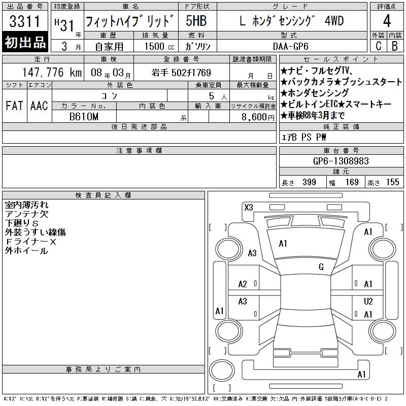 HONDA FIT HYBRID - лот 3311