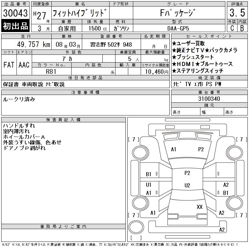 HONDA FIT HYBRID - лот 30043
