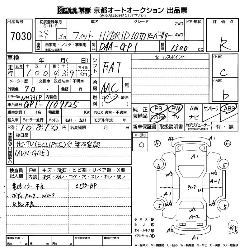 HONDA FIT HYBRID - лот 7030