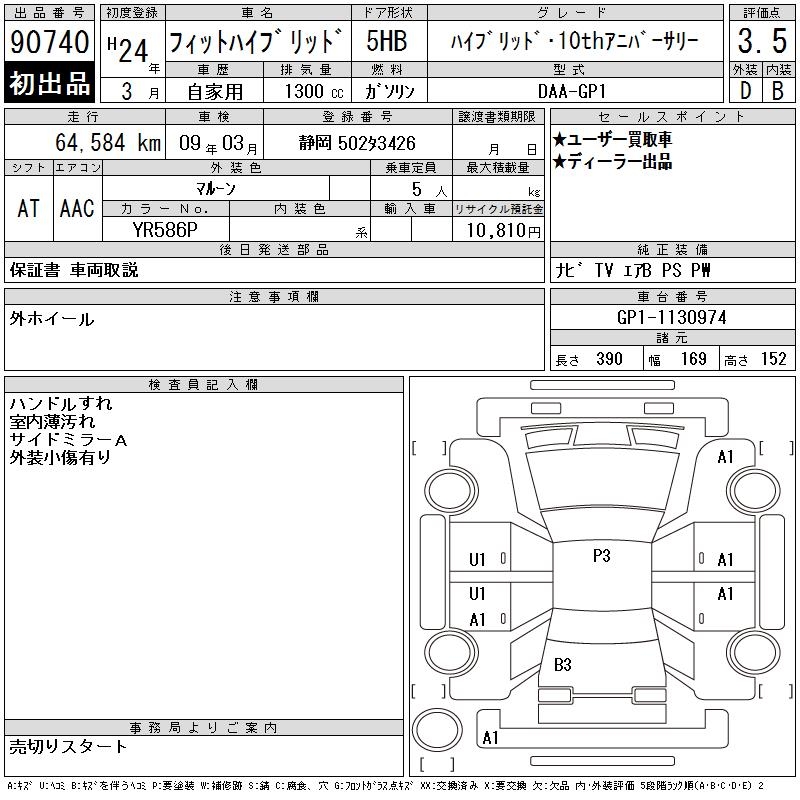 Все аукционы HONDA FIT HYBRID