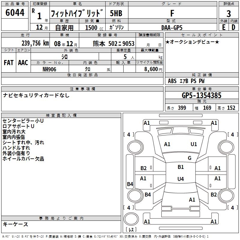 HONDA FIT HYBRID - лот 6044